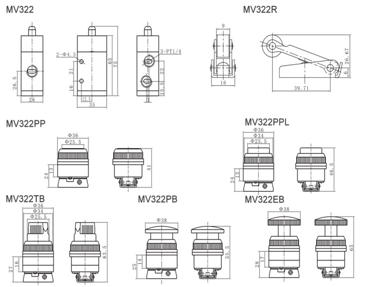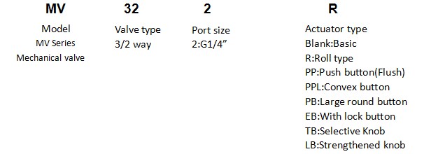 MV322 Series Mushroom head reset pneumatic mechanical valve MV322PB MV322EB